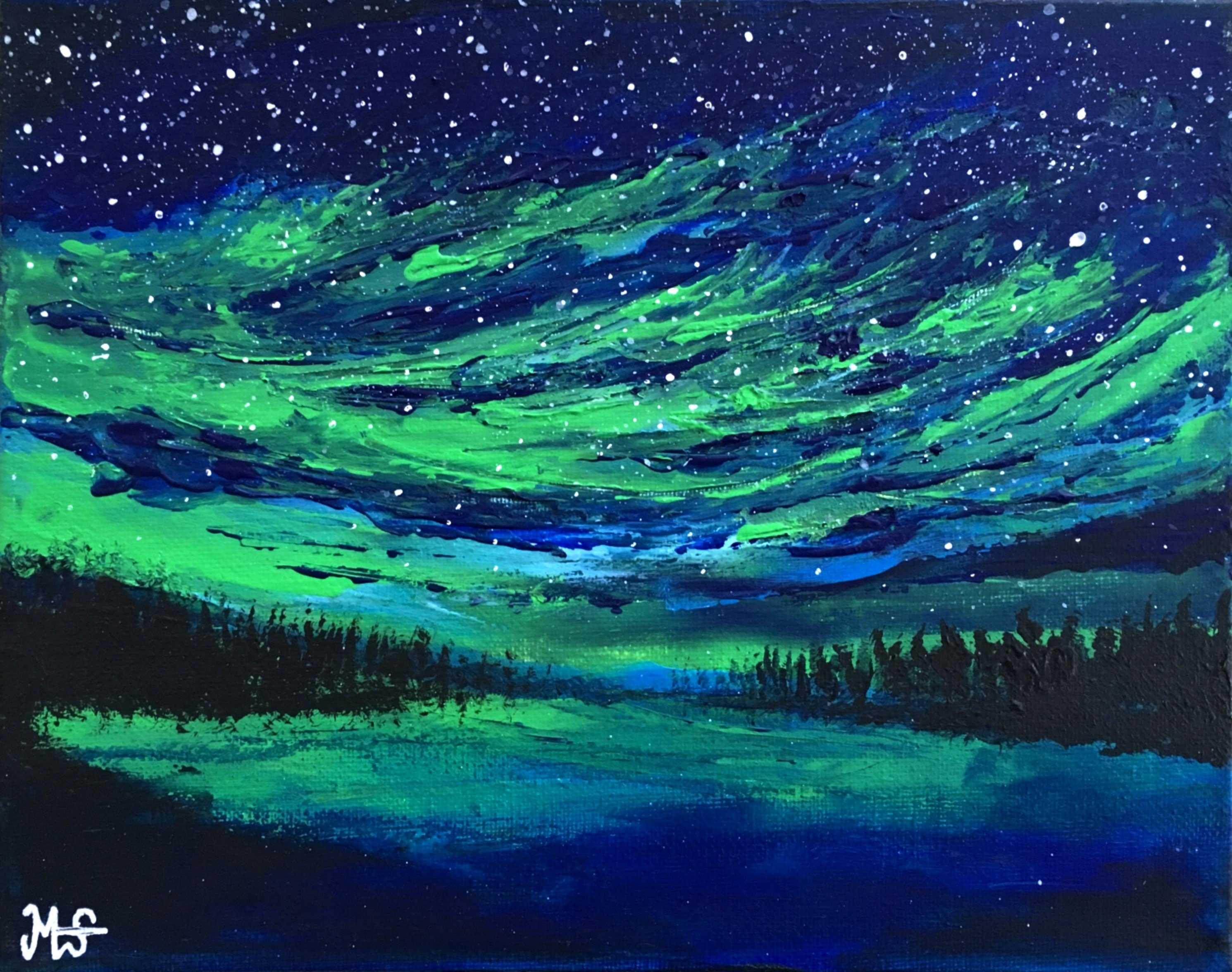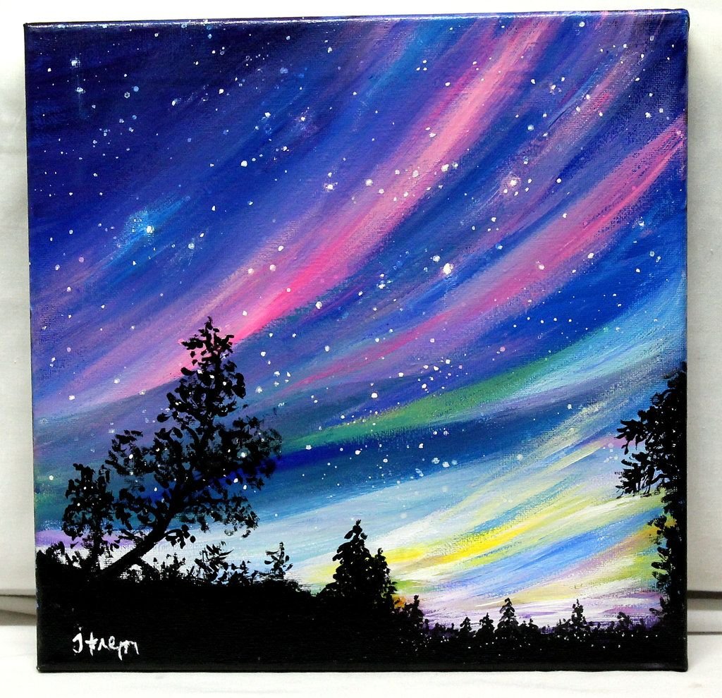Живопись акрилом Северное сияние