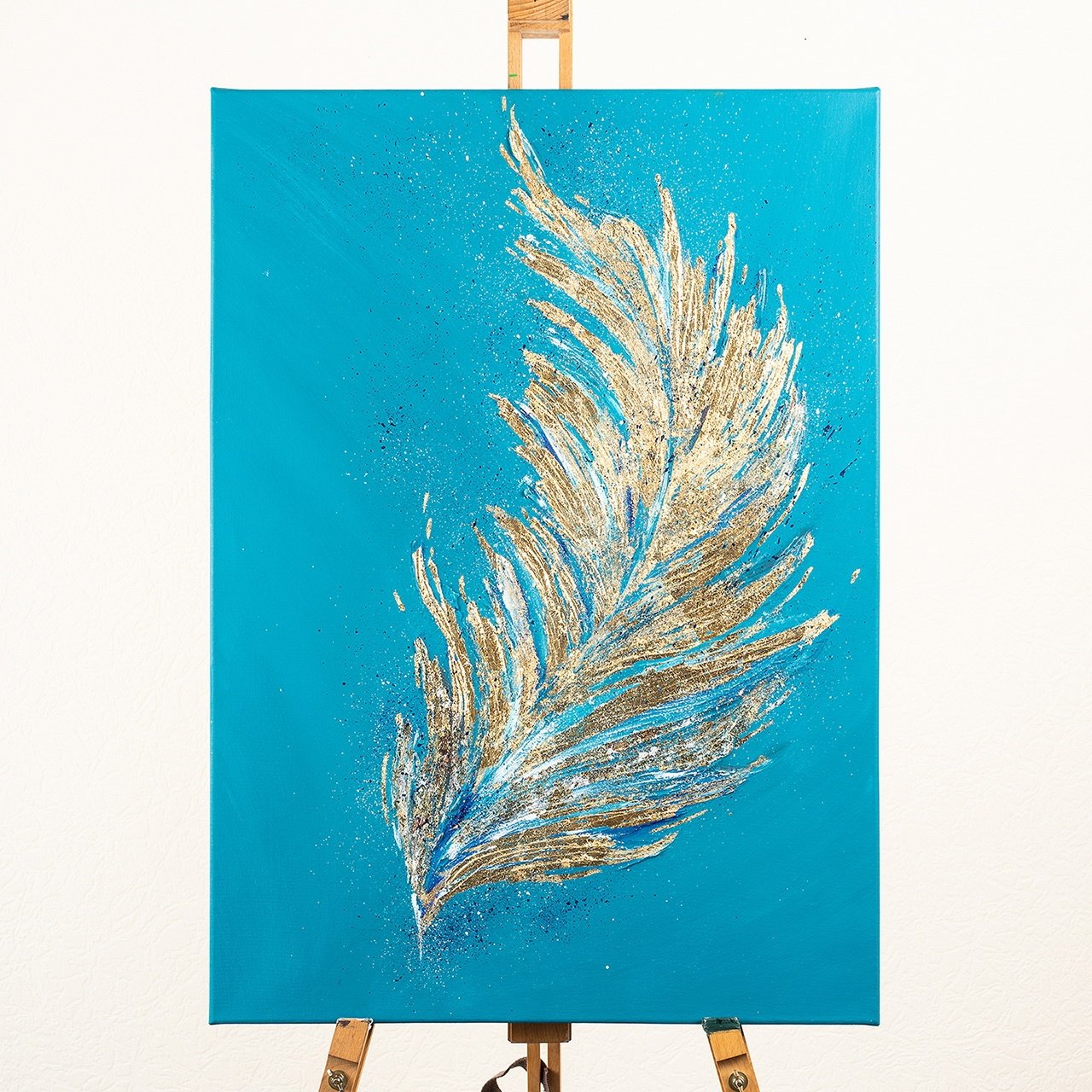![Золотое перо поталью и текстурной пастой]()