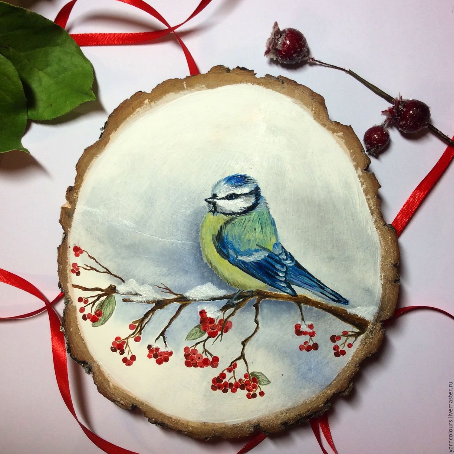 Роспись на срезе дерева