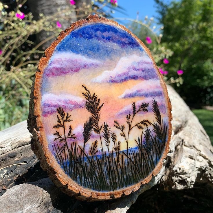 ![Живопись на спиле дерева]()