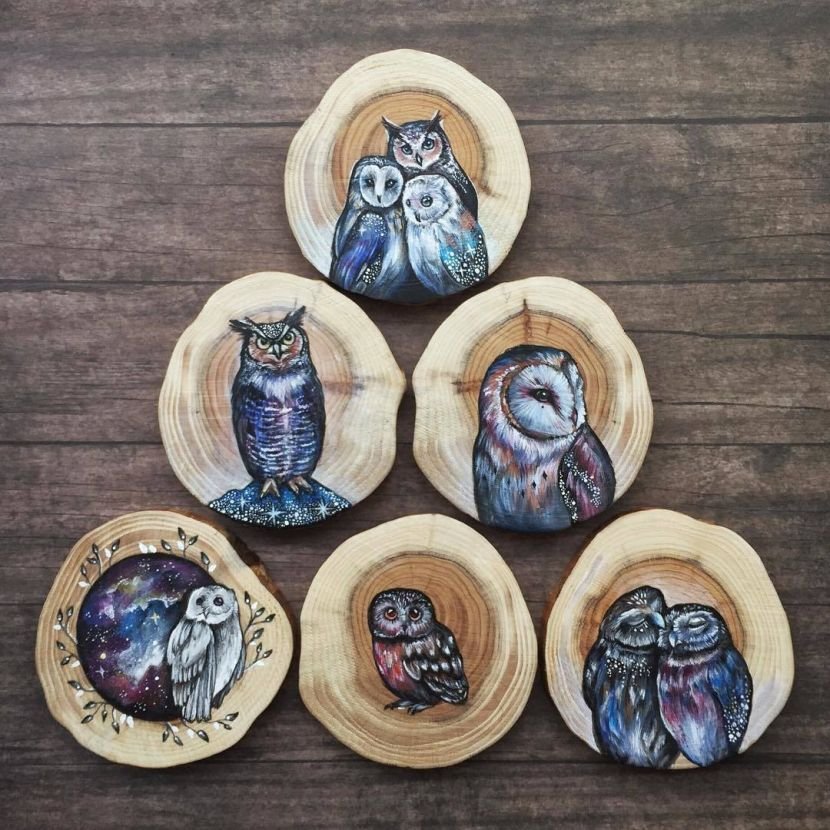 ![Рисование на деревянных спилах]()