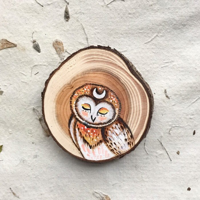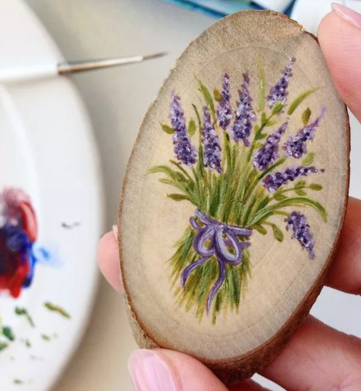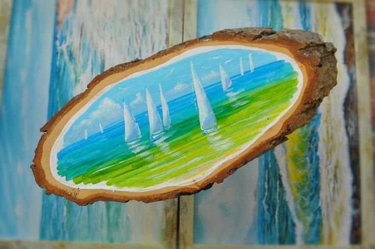 ![Рисование на спиле дерева акрилом]()