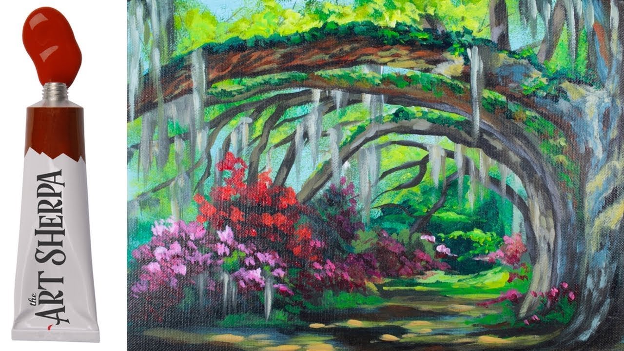 ![Картина сад акрилом]()
