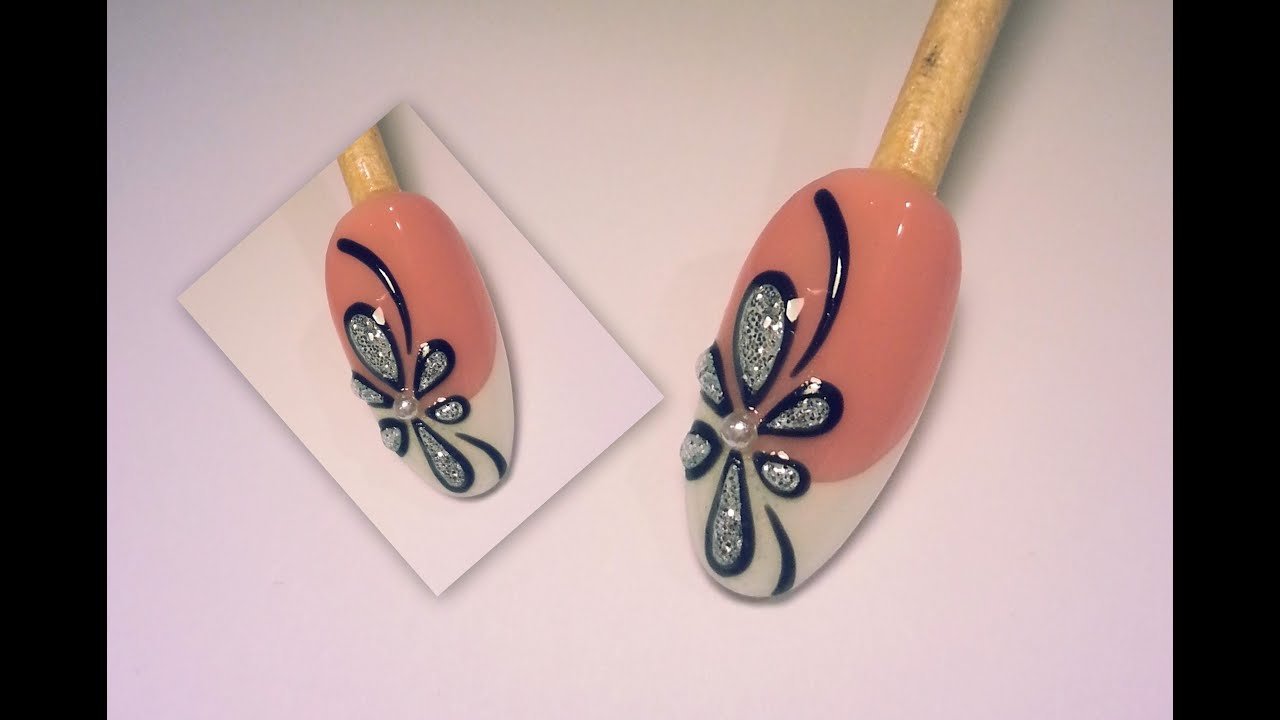 ![Бабочка кисточкой на ногтях]()