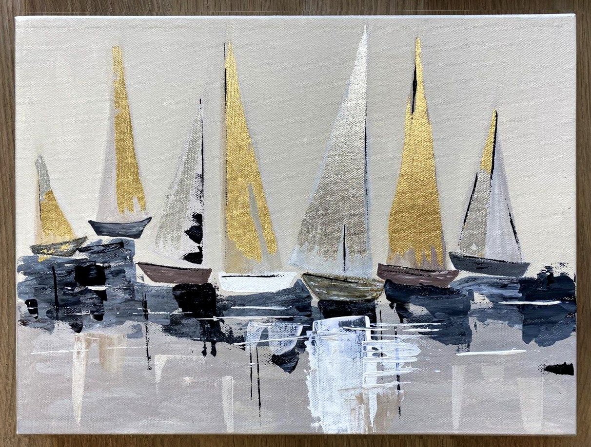 Акриловая живопись парусник с поталью