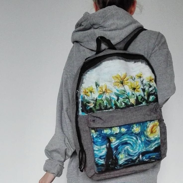 ![Роспись рюкзака акриловыми красками]()