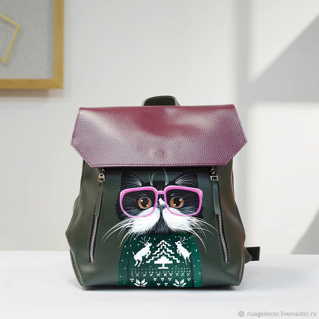 ![Кожаная сумка с кошкой]()