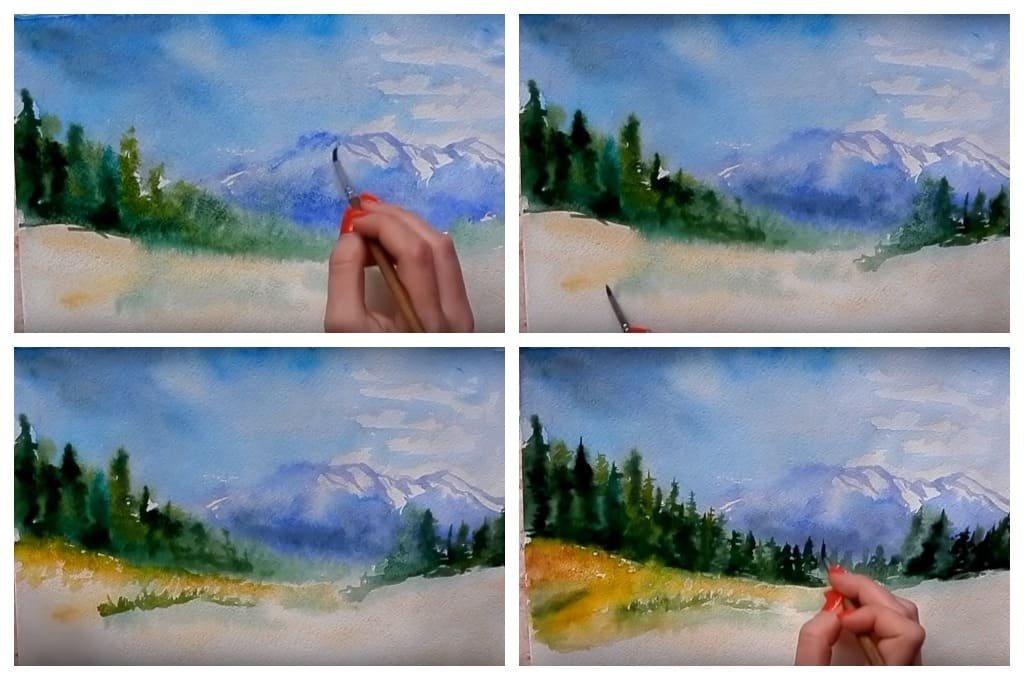 Пейзаж акрилом на холсте для начинающих лёгкие
