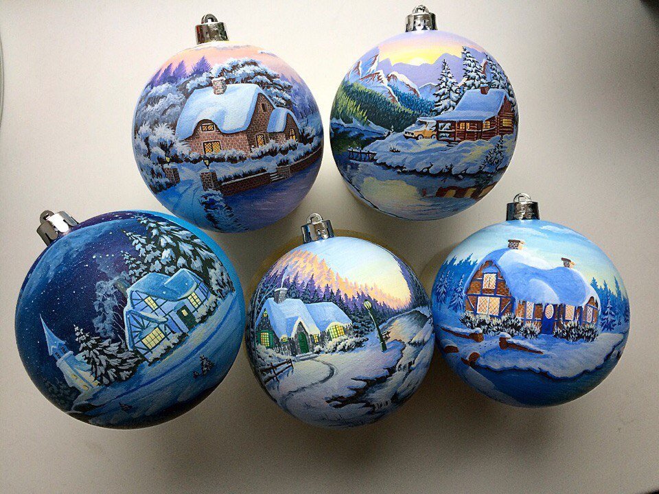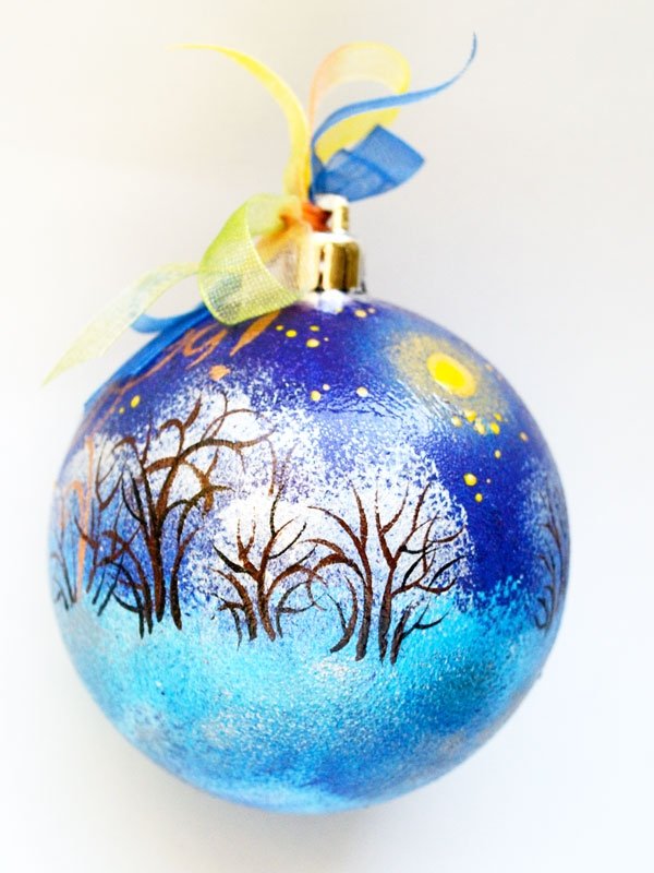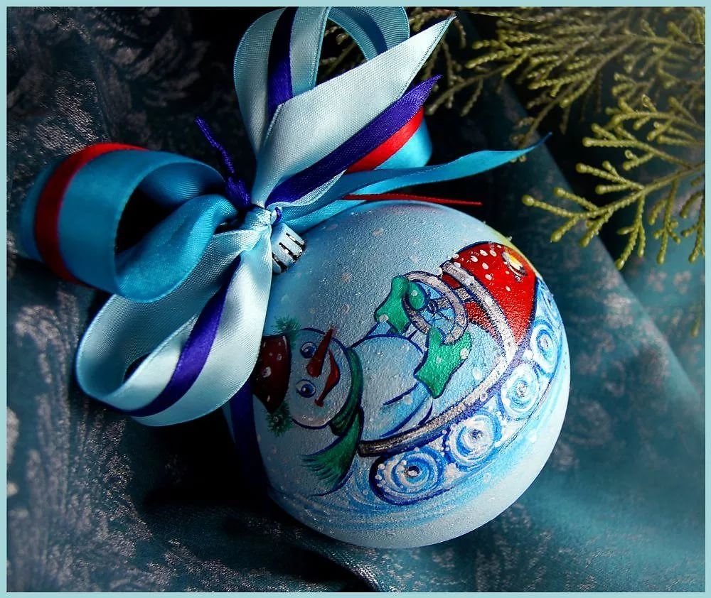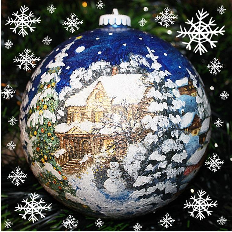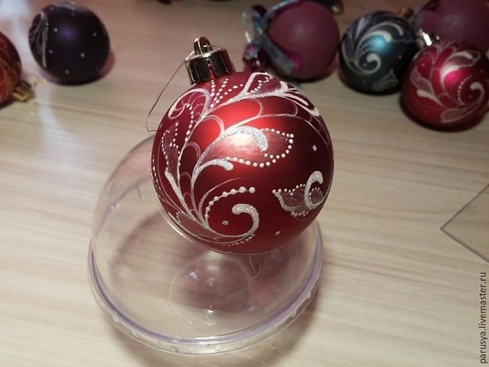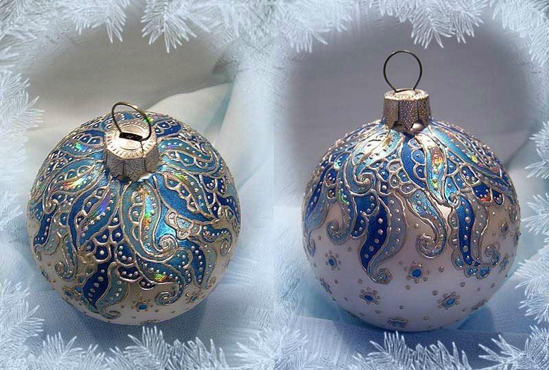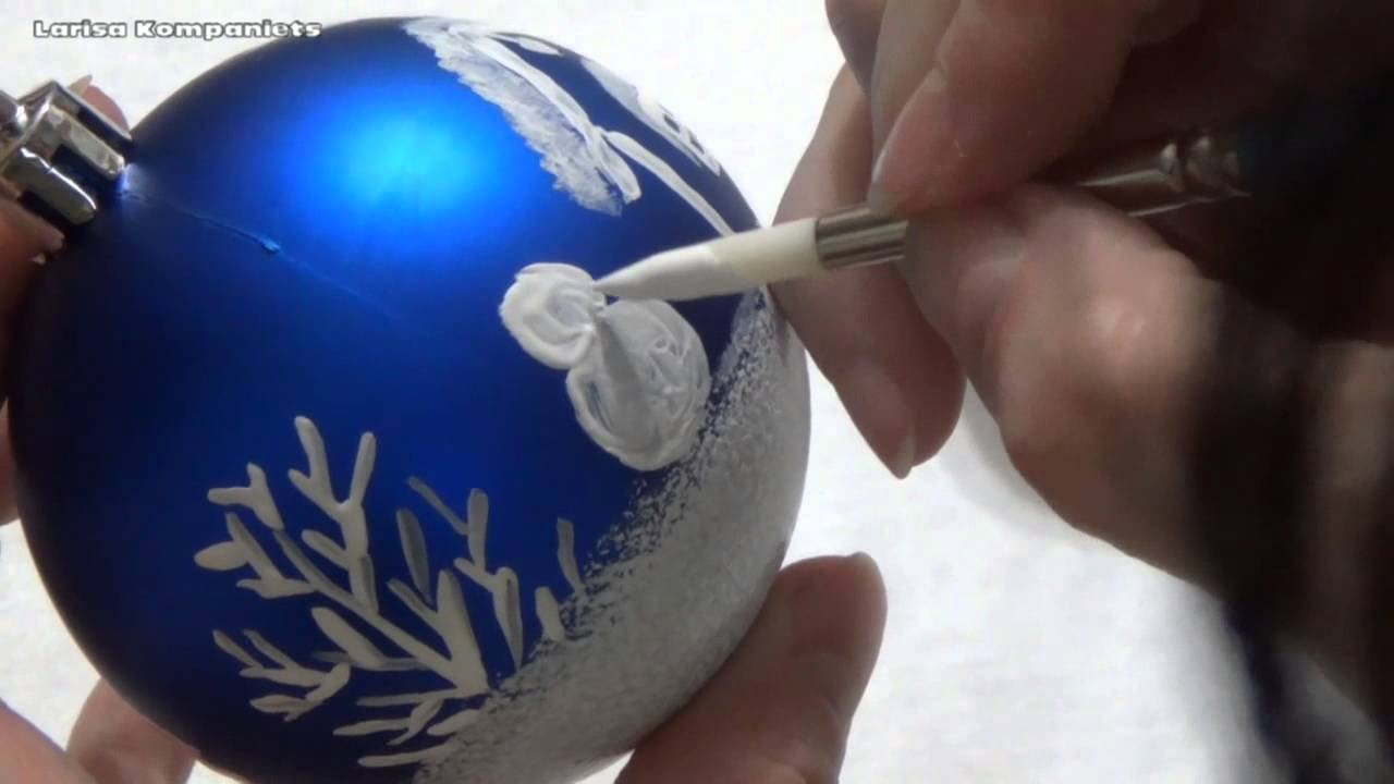 ![Роспись новогодних шаров своими руками акриловыми красками]()