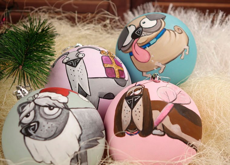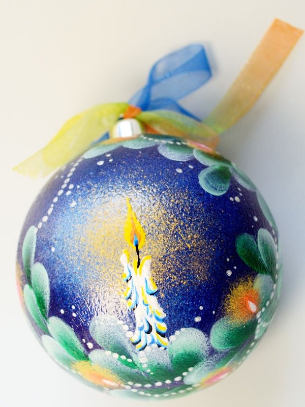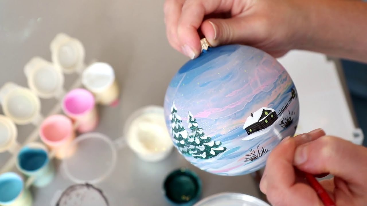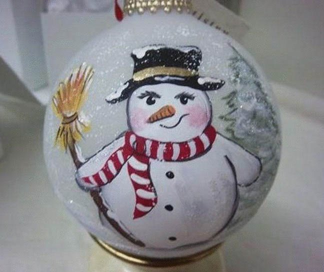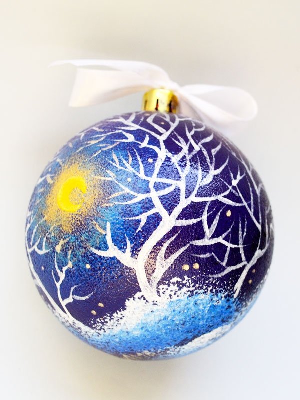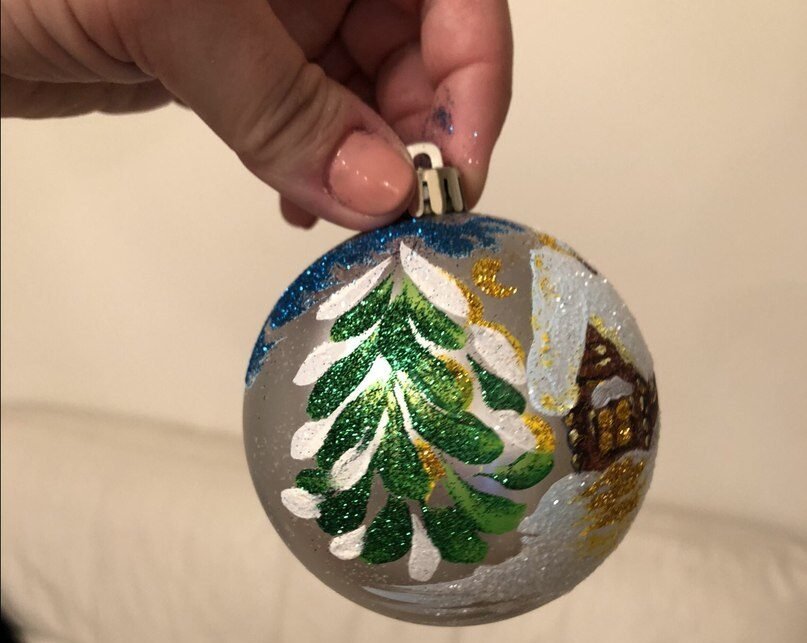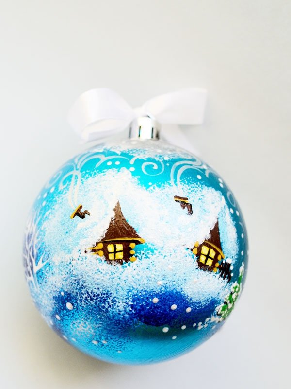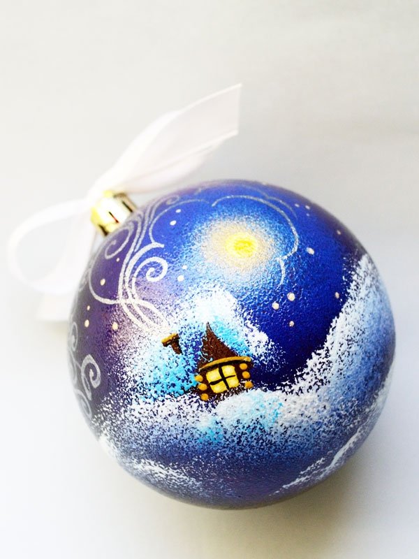![Роспись новогодних шаров своими руками акриловыми красками]()