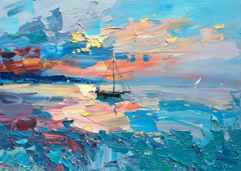 ![Парусник мастихином картина]()