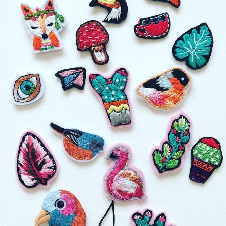 ![Вышитые броши гладью]()