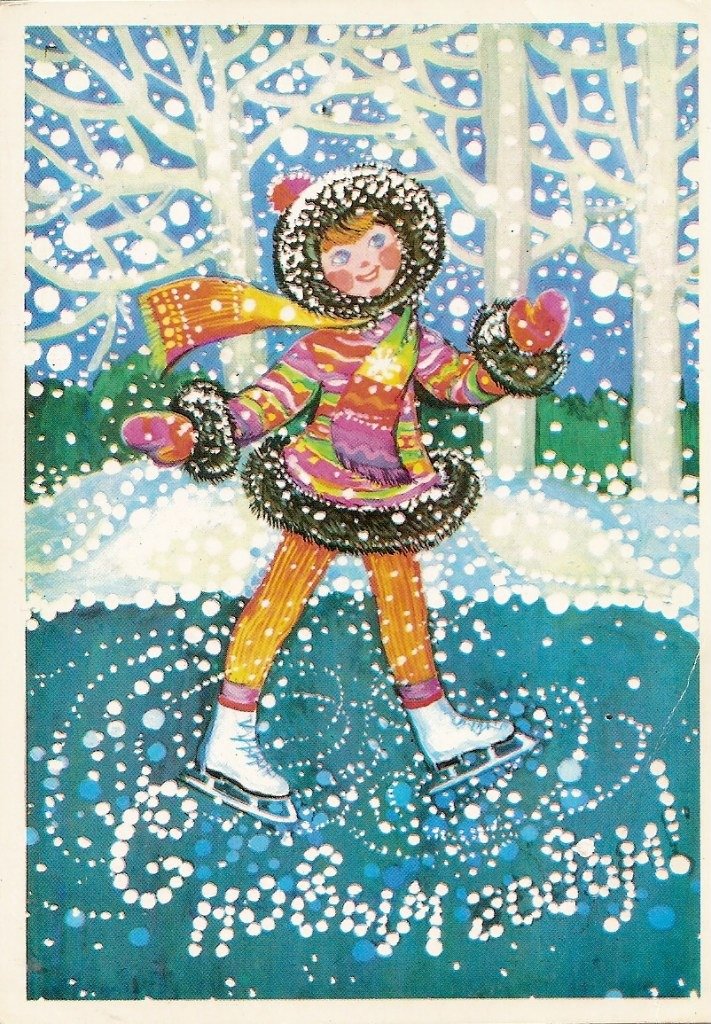 ![Новогодняя открытка с коньками]()