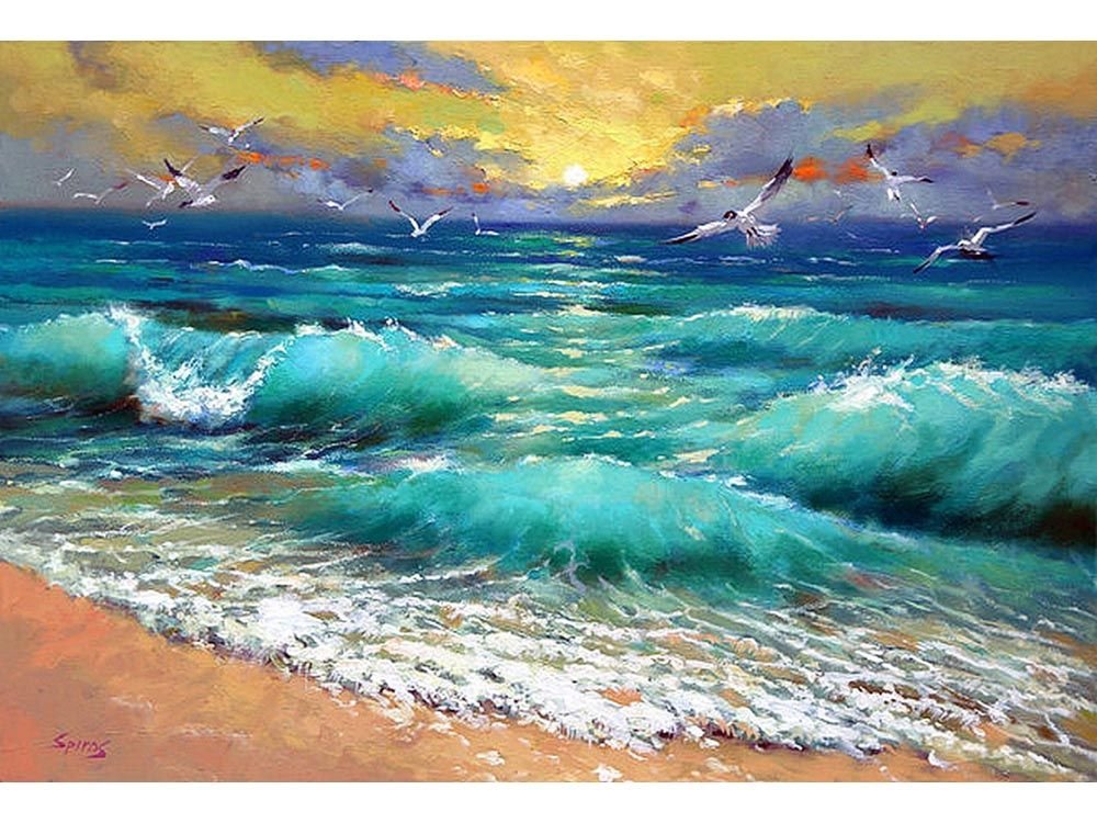 Морская волна - это захватывающий рисунок, созданный с использованием акриловых красок. Волны, прекрасно переданные на холсте, оживают благодаря ярким и насыщенным оттенкам синего и белого. Игра света и тени придает этому произведению глубину и реалистичность, позволяя зрителю почувствовать мощь и энергию прибоя. Рисунок морской волны акрилом станет прекрасным украшением для интерьера, добавляя в него ощущение свежести и спокойствия, а также подчеркивая уникальность и красоту морской природы.