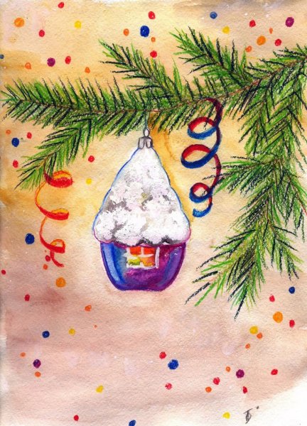 ![Новогодний шар акриловыми красками]()