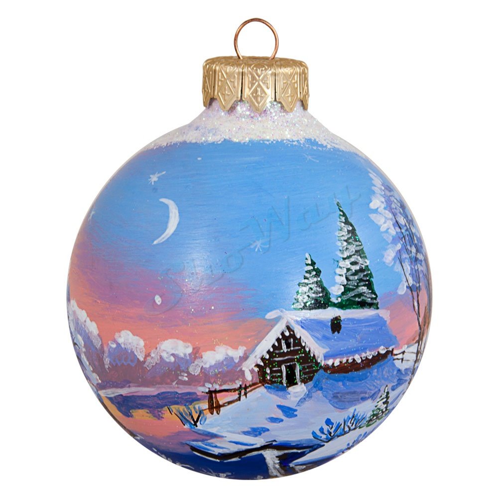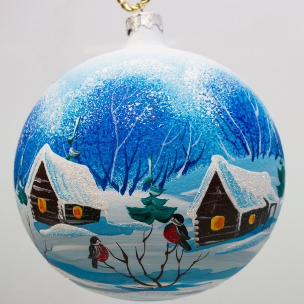 ![Пейзажи на новогодних шарах зимние]()