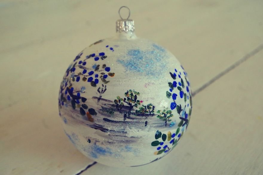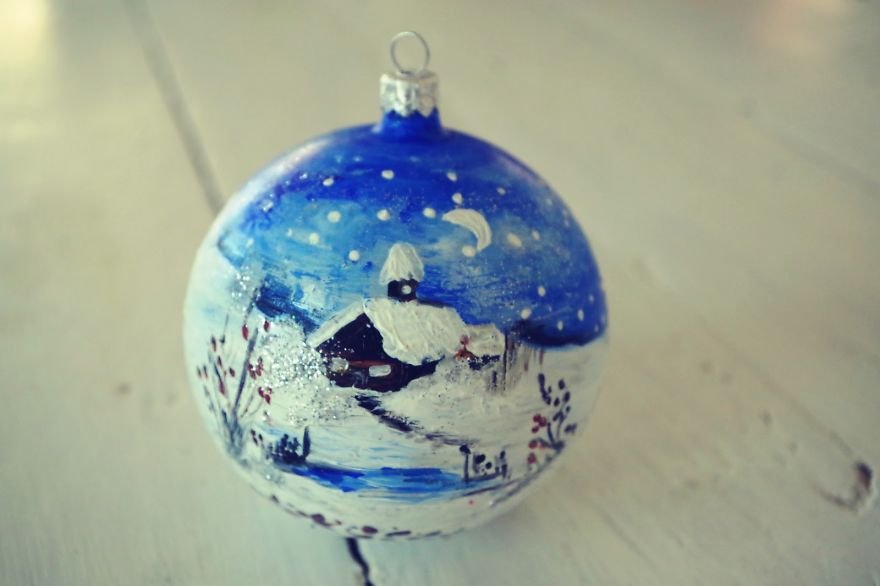 ![Расписанные новогодние шары]()