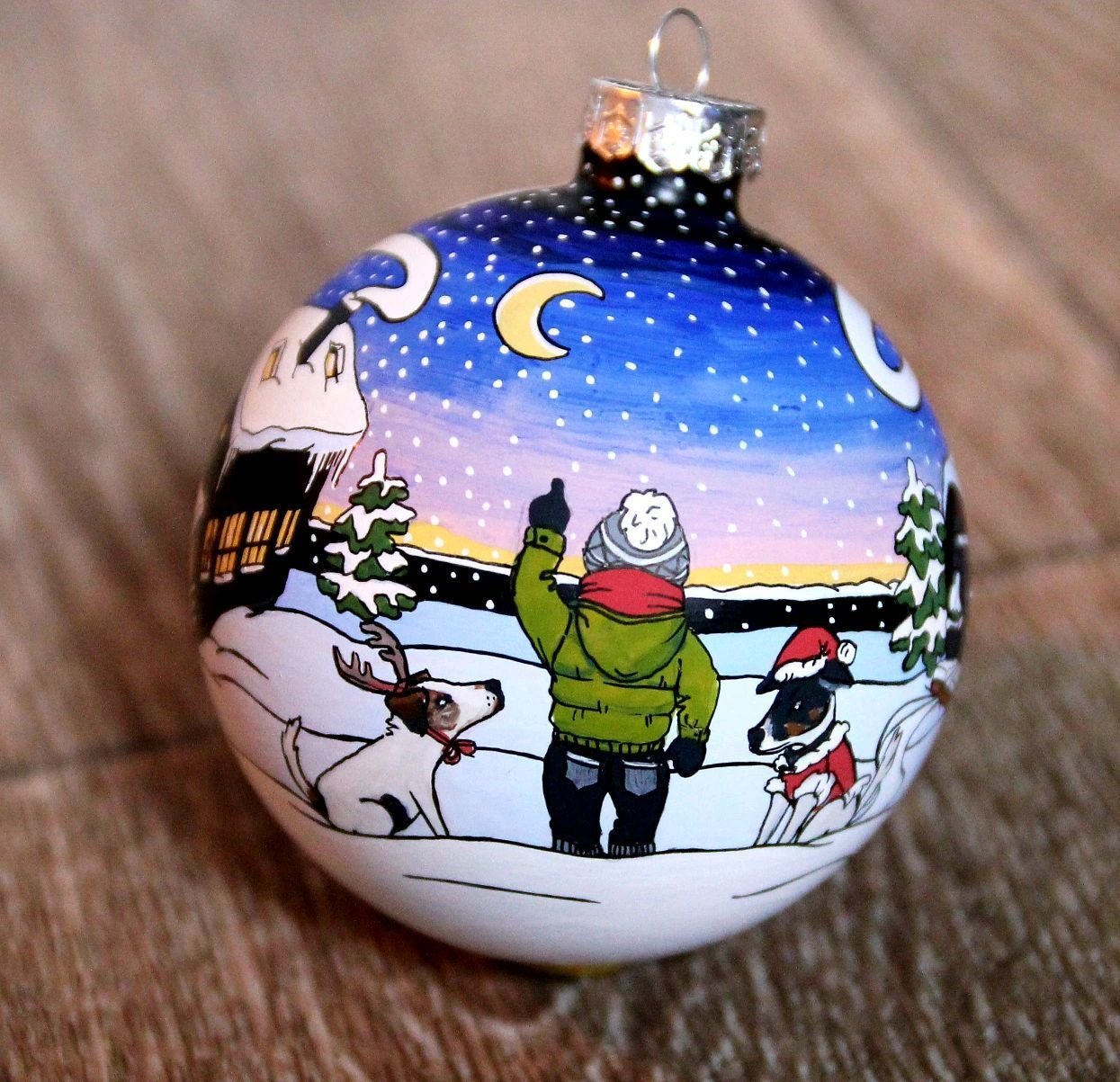 Раскрашенный новогодний шар с домиком