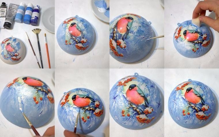 ![Декупаж елочных шаров из пенопласта]()