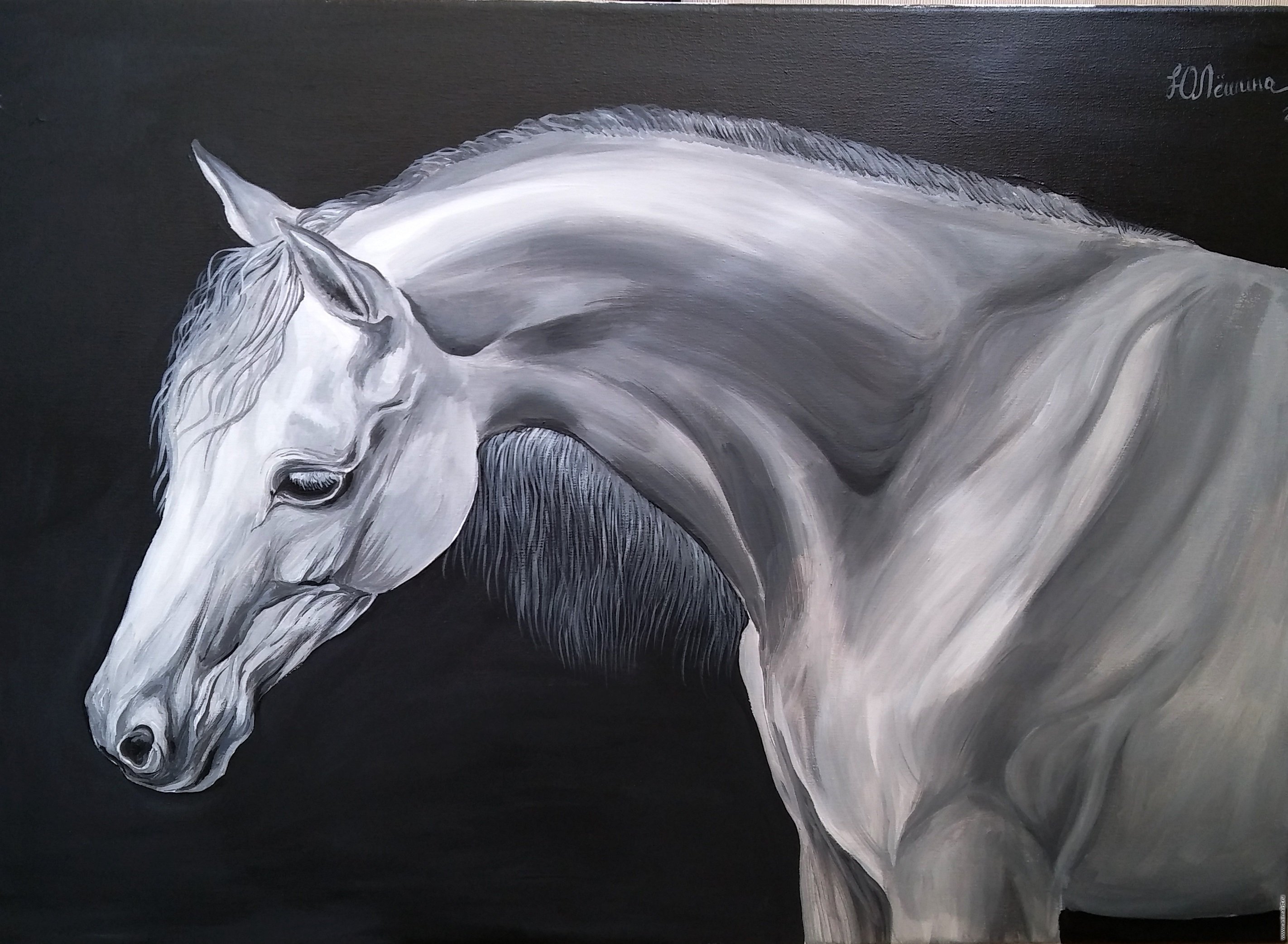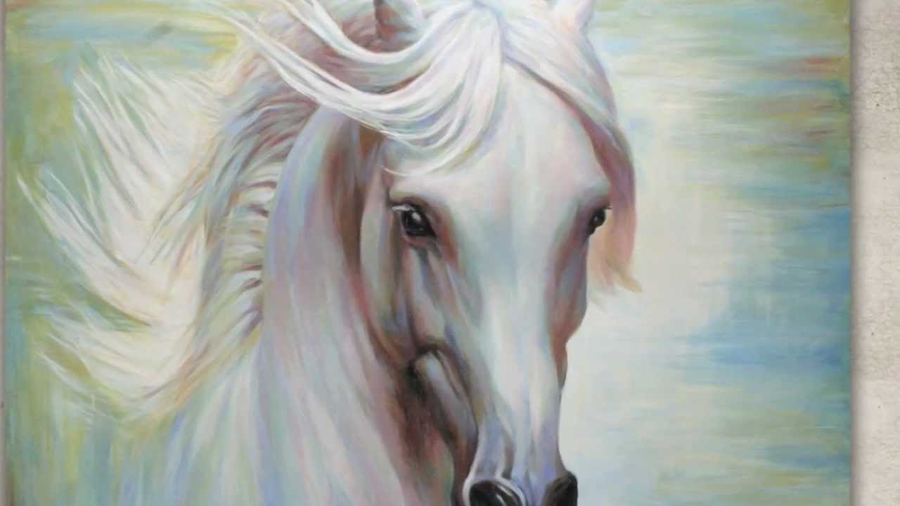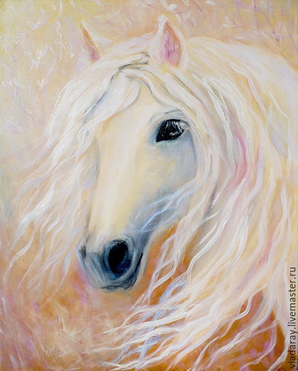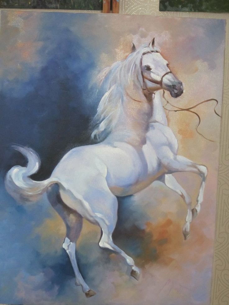 ![Белая лошадь маслом]()
