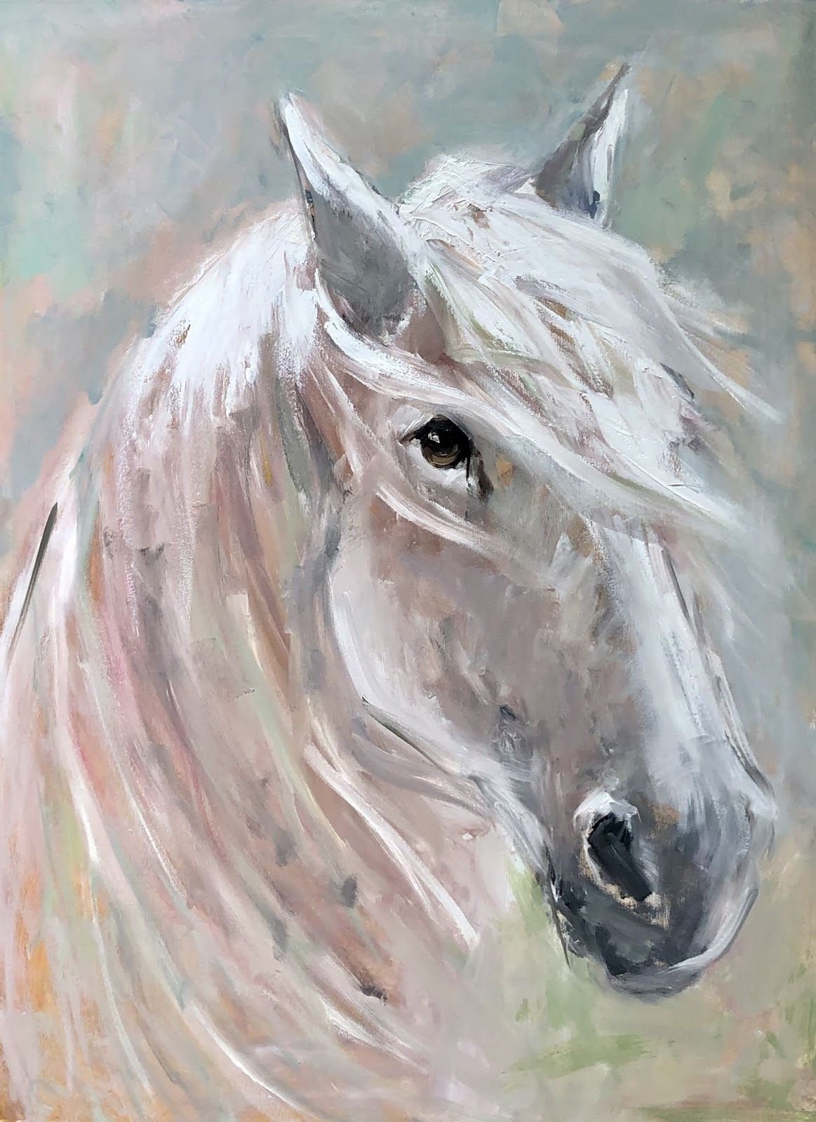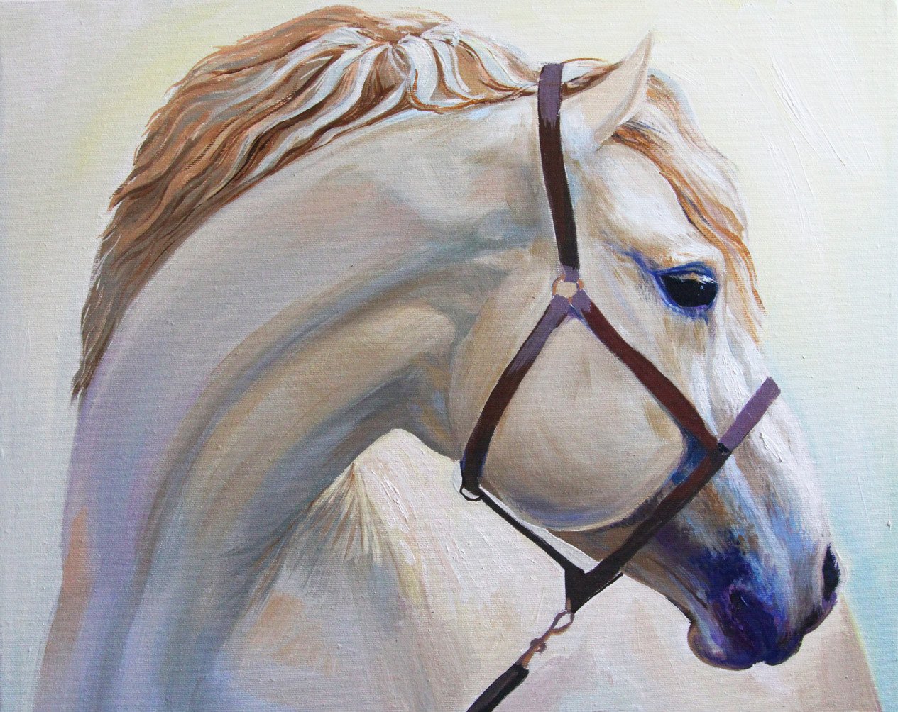 Белая лошадь маслом