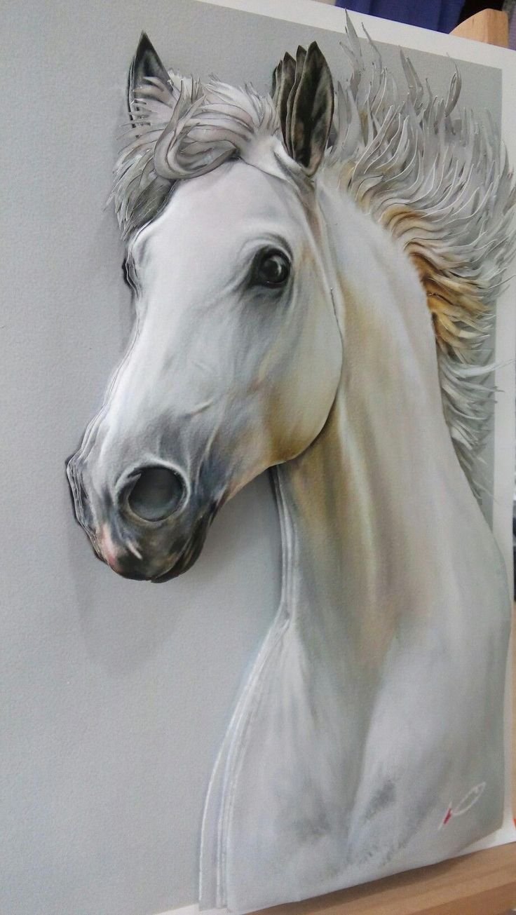 ![Белая лошадь акрилом]()
