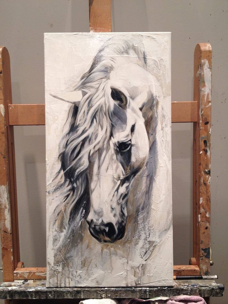 ![Живопись акрилом на холсте лошадь]()