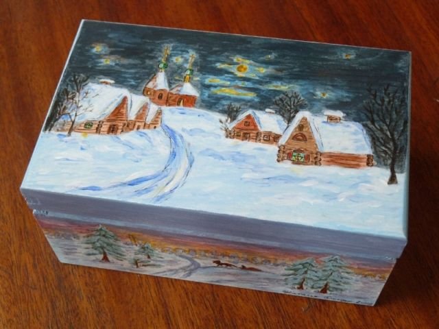 ![Роспись шкатулок акриловыми красками двойной мазок]()