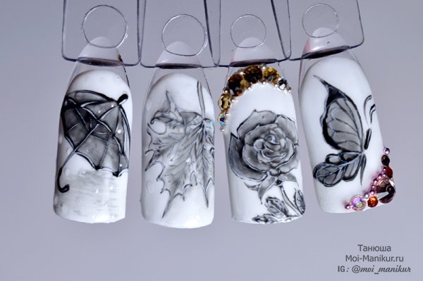 Хотите добавить немного загадочности и стиля в свой образ? Рисунки на ногтях, выполненные с помощью черного акрилового лака, идеально подходят для этой цели. Черный цвет всегда привлекал внимание и является символом элегантности и индивидуальности. Вы можете выбрать различные дизайны, начиная от абстрактных узоров и геометрических фигур до изысканных цветочных мотивов или даже небольших рисунков. Черные рисунки на ногтях добавят вашему стилю неповторимость и подчеркнут вашу уверенность и индивидуальность.