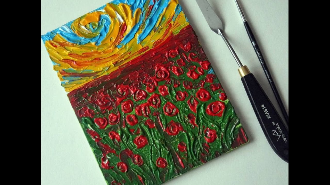 ![Маковое поле акриловыми красками]()