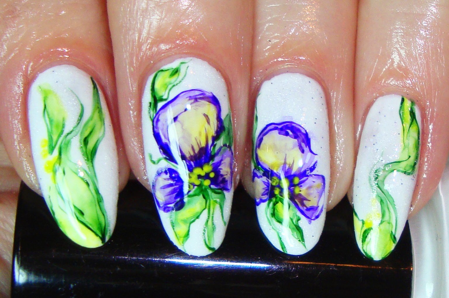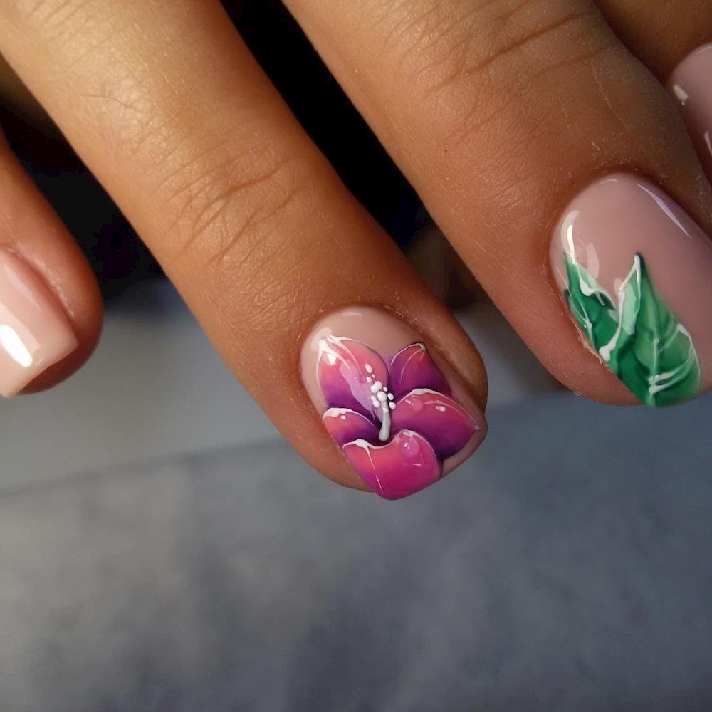 ![Акварельные цветы на ногтях]()