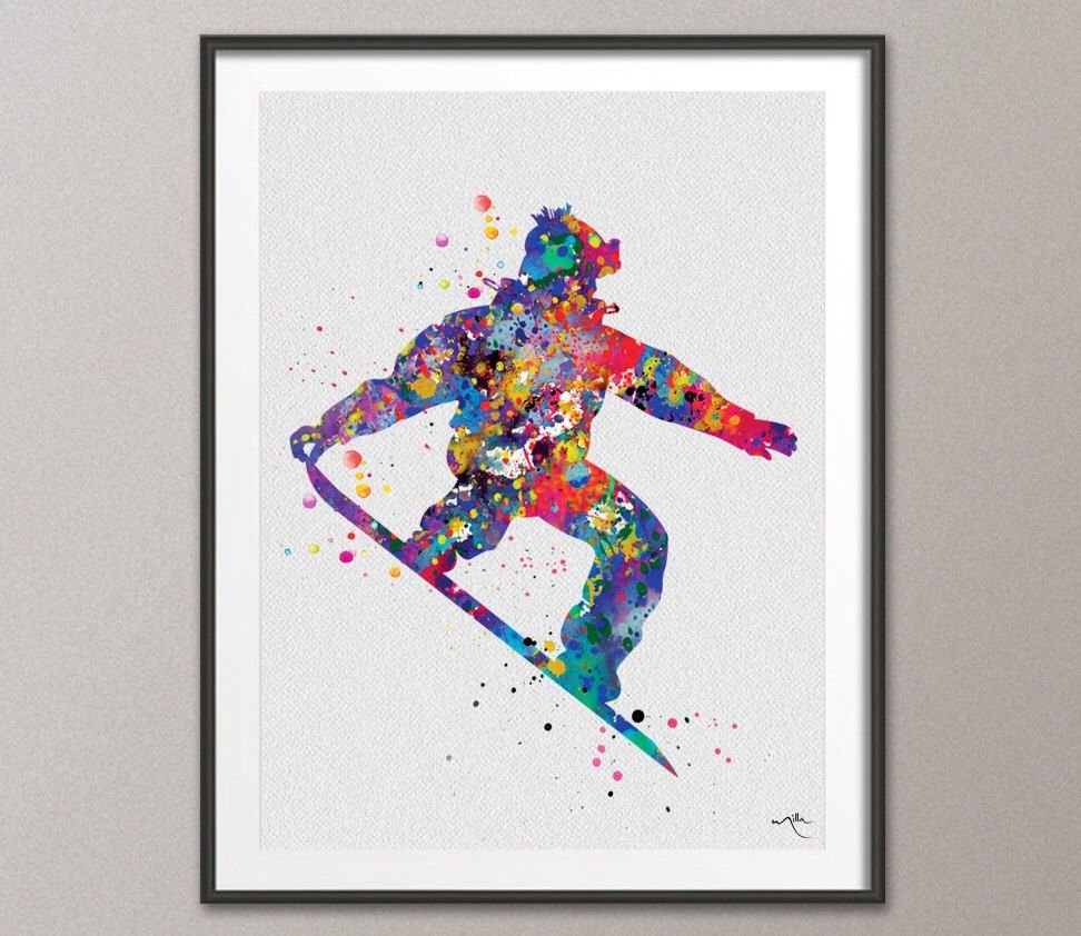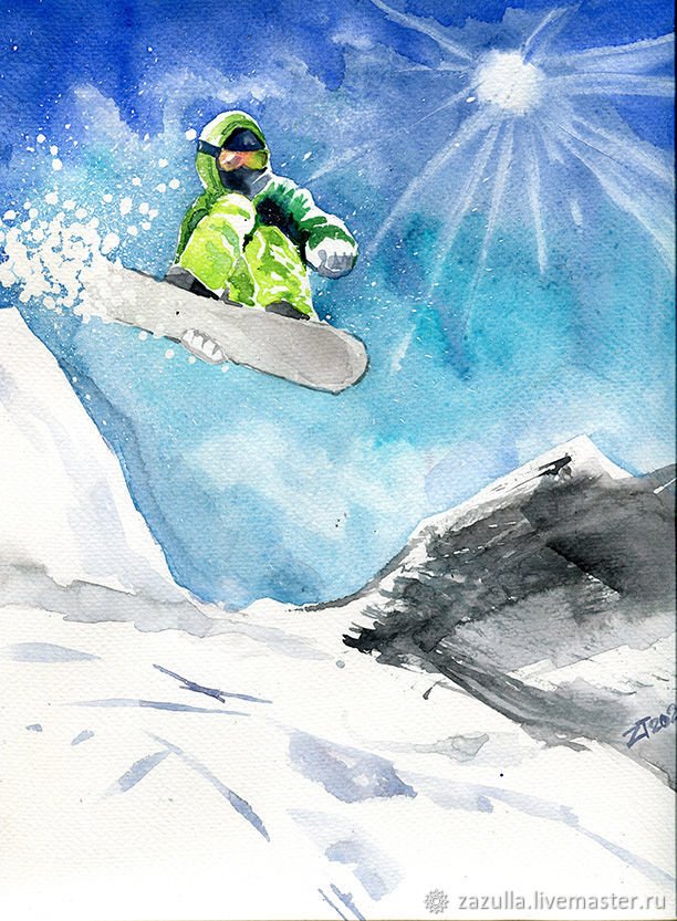 ![Сноубордист живопись акварель]()