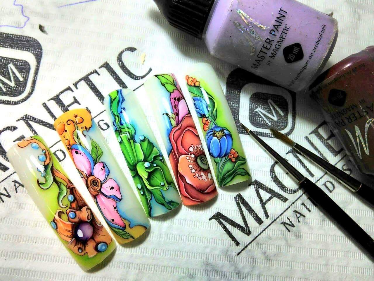 ![Дизайн ногтей акриловыми красками]()
