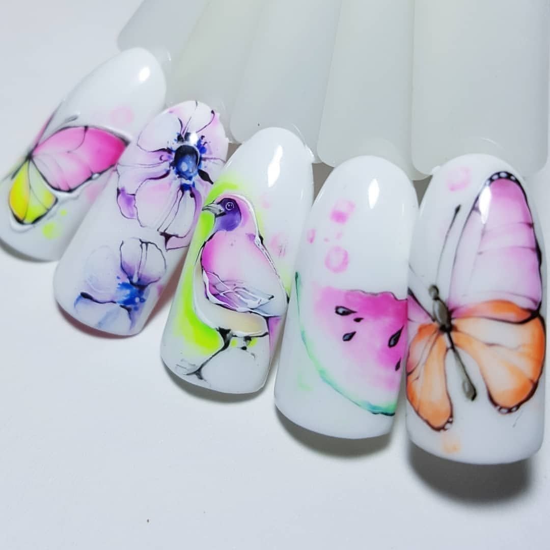 Акварель на ногтях