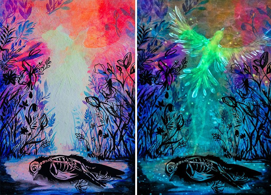 Рисунок флуоресцентным акрилом - это яркое, эффектное и оригинальное решение для создания неповторимых произведений искусства. Флуоресцентные акриловые краски имеют свойство светиться под ультрафиолетовым освещением, что придает картине волшебную атмосферу и самобытность. Благодаря своей яркости и насыщенности, такие рисунки притягивают внимание зрителей и создают эффект глубины и объемности. Они могут быть использованы в различных стилях и жанрах искусства, от абстракции до пейзажа, и с легкостью передадут настроение и эмоции автора. Рисунок флуоресцентным акрилом - это воплощение креативности и экспериментирования с красками, которое оставит яркий след в сердцах людей.