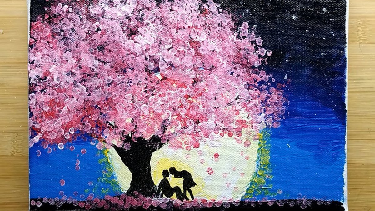 Нарисовать сакуру на холсте