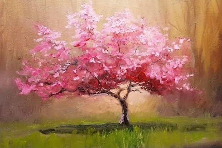 ![Сакура акриловыми красками]()