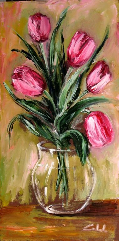 ![Тюльпаны в вазе акрилом]()
