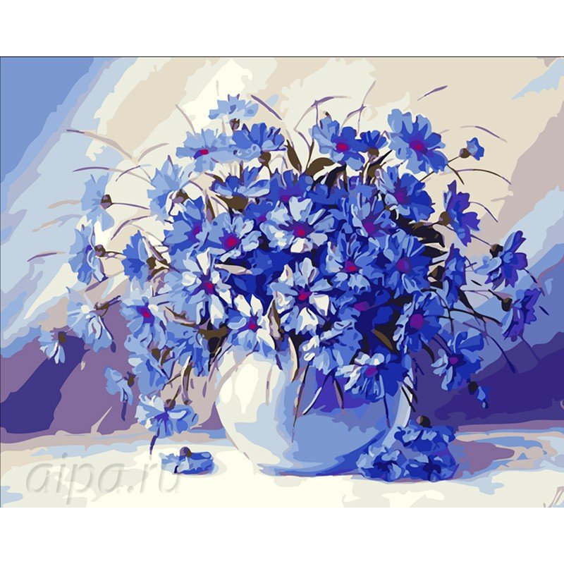 Синяя ваза с цветами