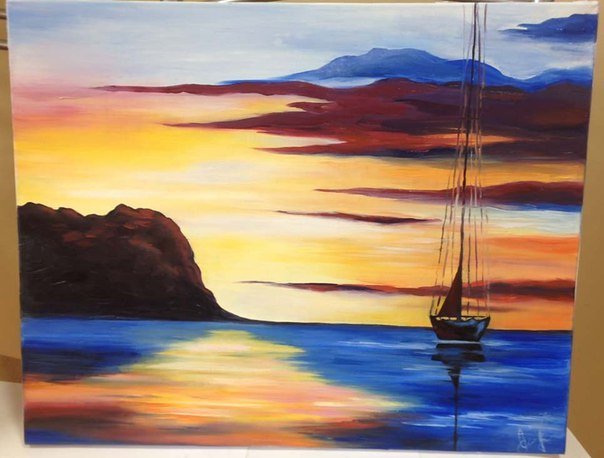 ![Пейзаж акрилом на холсте для начинающих лёгкие]()