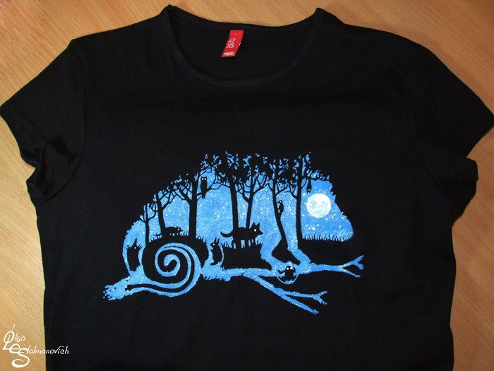 Роспись на черной футболке акриловыми красками