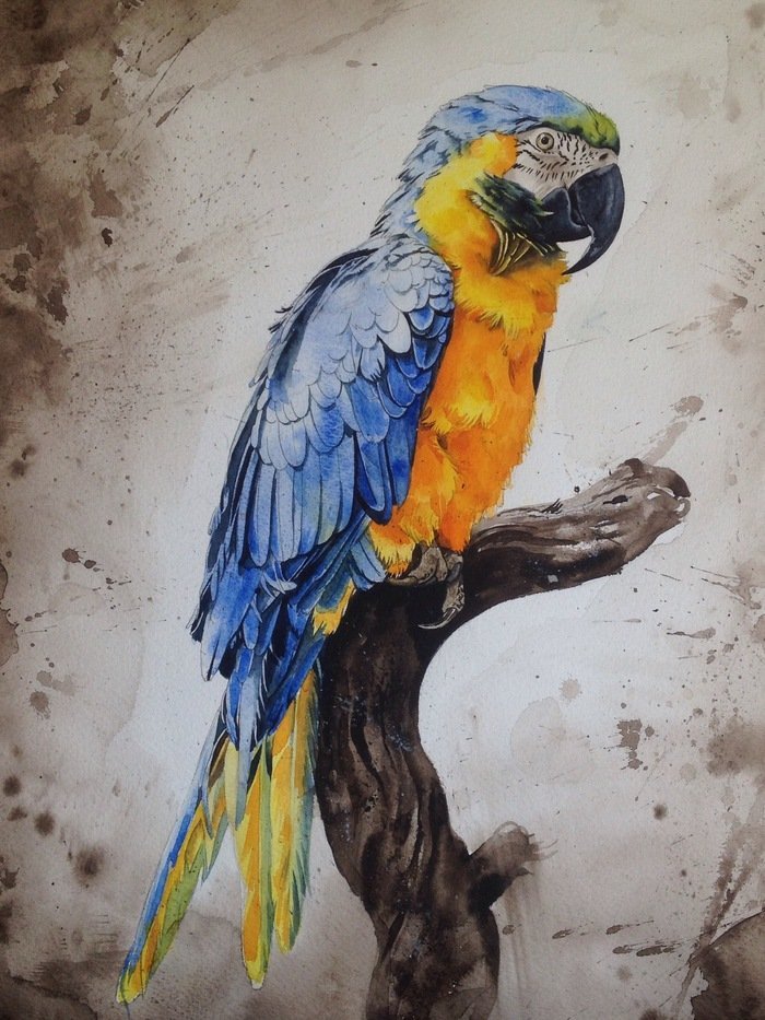 Попугай акварелью