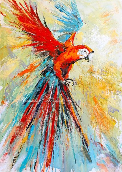 ![Попугай акрилом на холсте]()