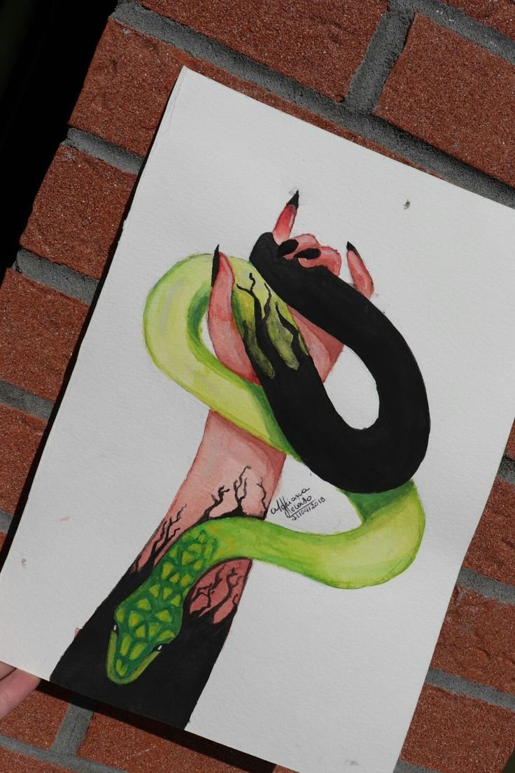 ![Змея скетч акварелью]()