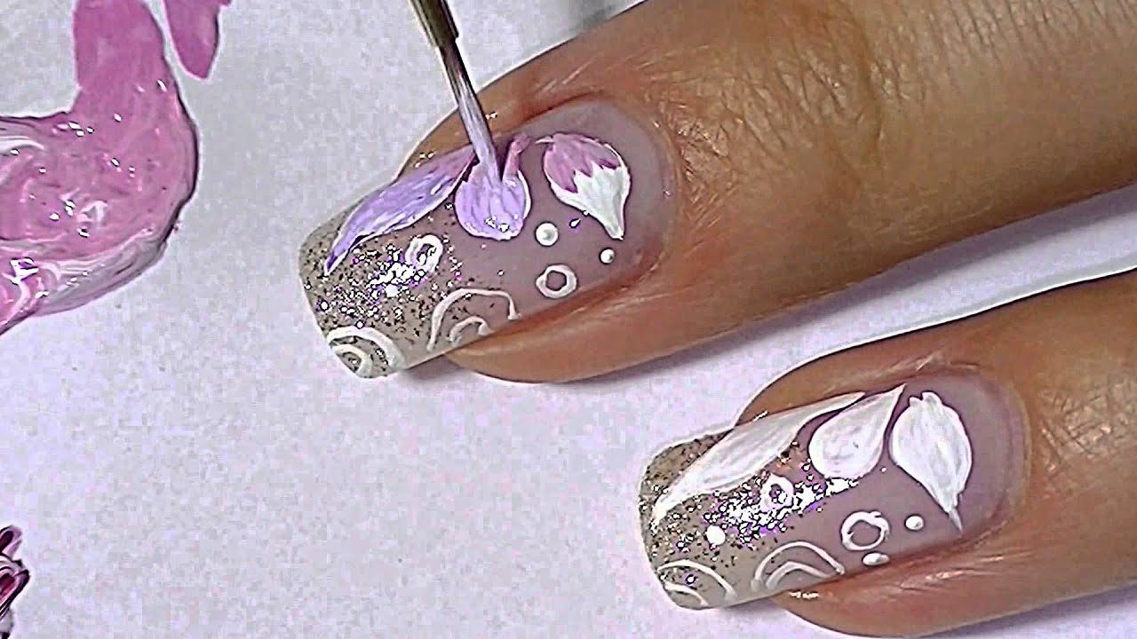 Маникюр цветы акриловыми красками
