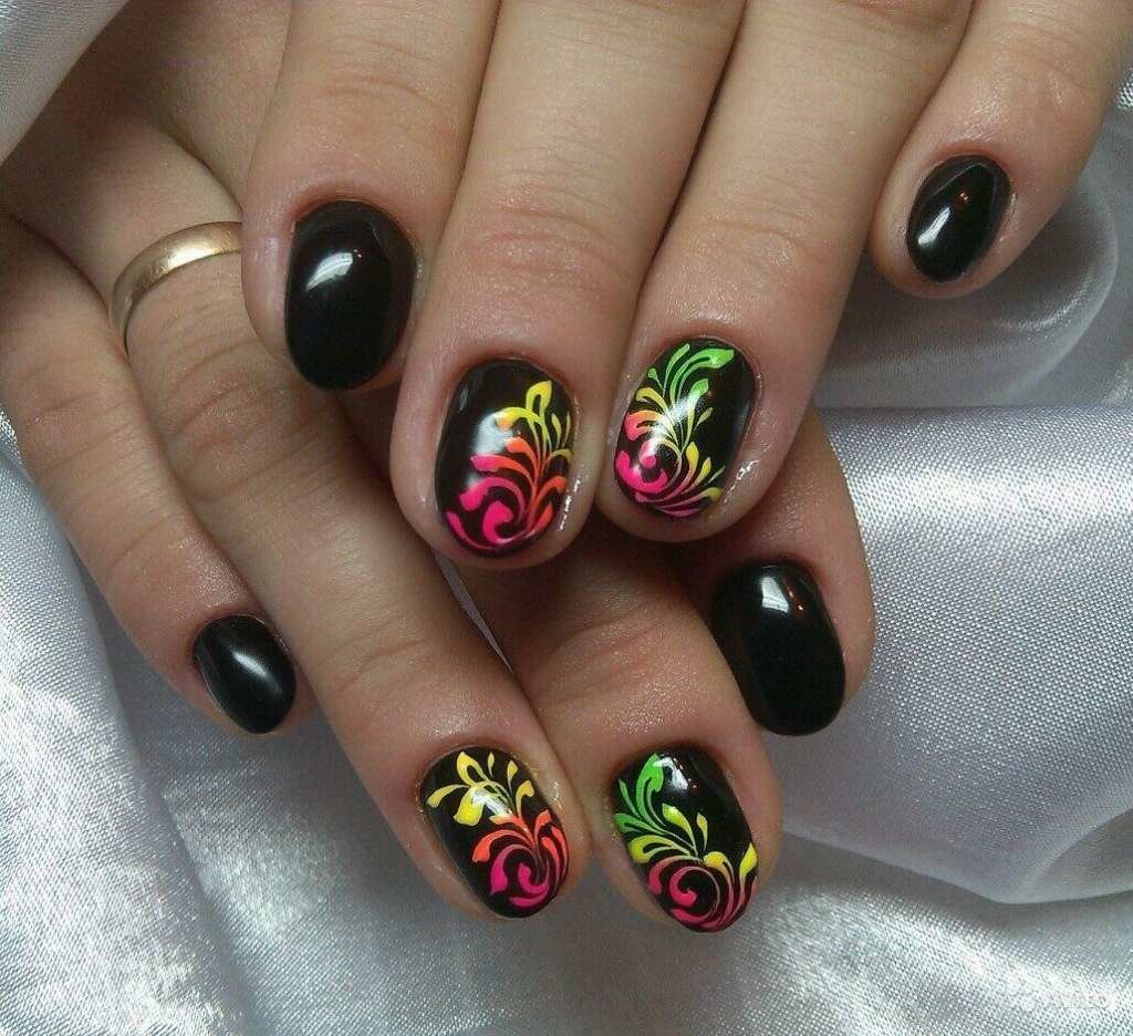 Маникюр черной акриловой краской