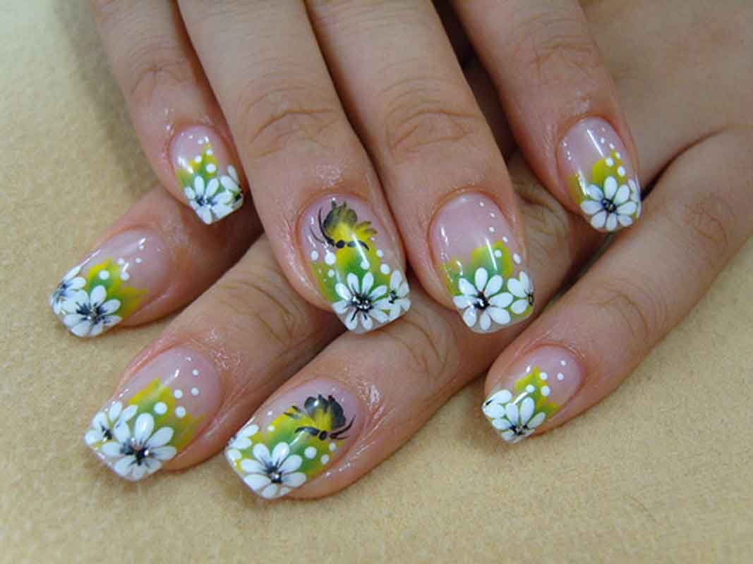 Маникюр со цветочками и с бабочками