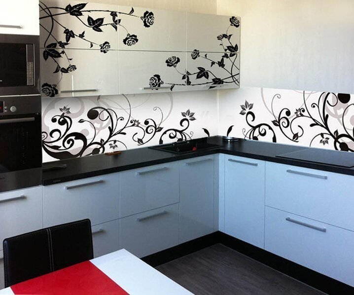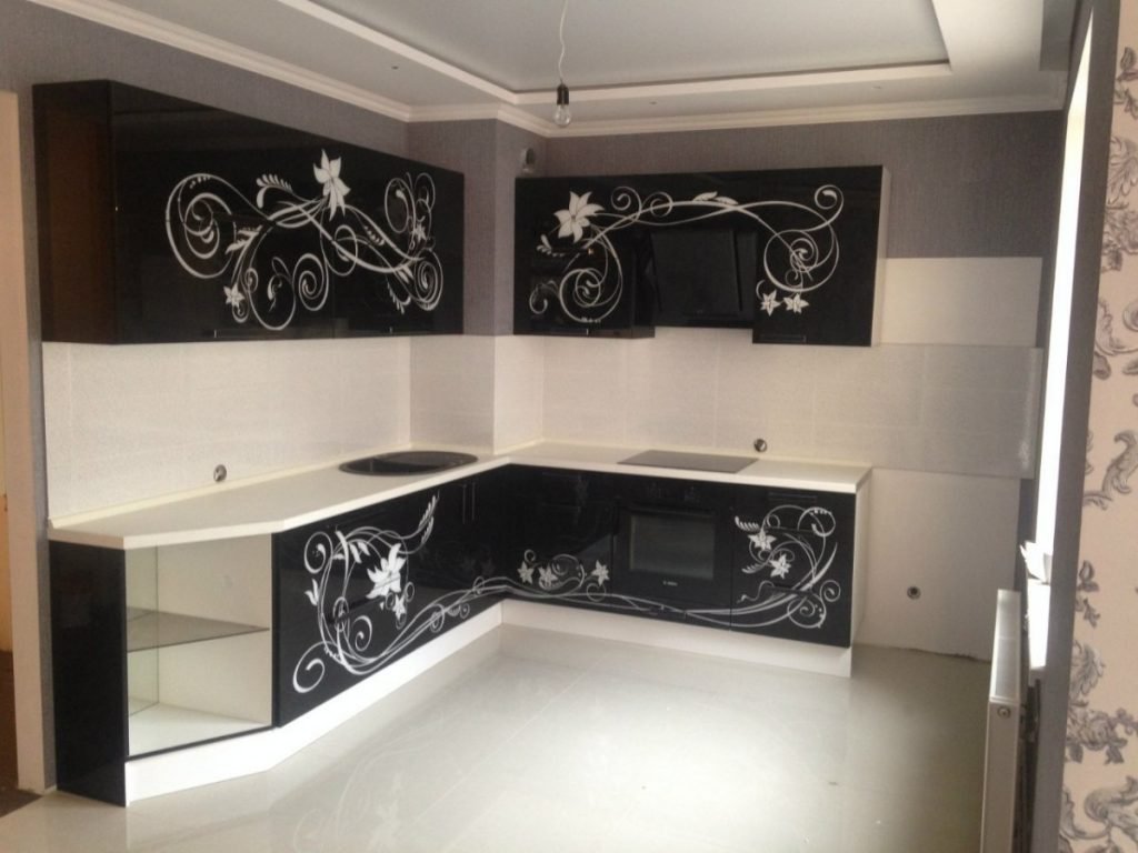 Кухонные фасады черные с рисунком