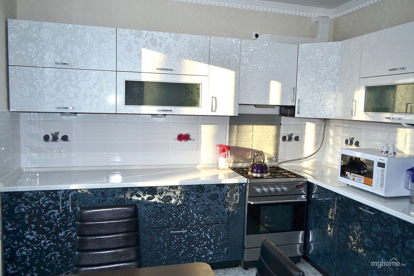 ![Кухонный гарнитур с узорами]()