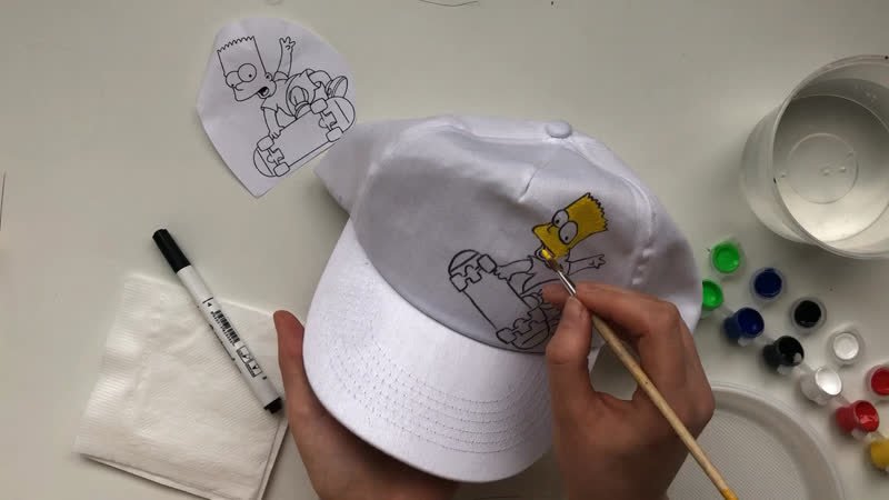 Рисунки на кепке акриловыми красками